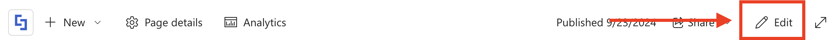 - Go to the SharePoint page you want to use and click Edit: