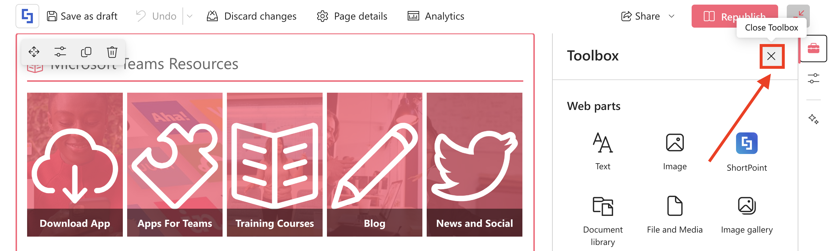 - Click the cross icon to close the Toolbox: