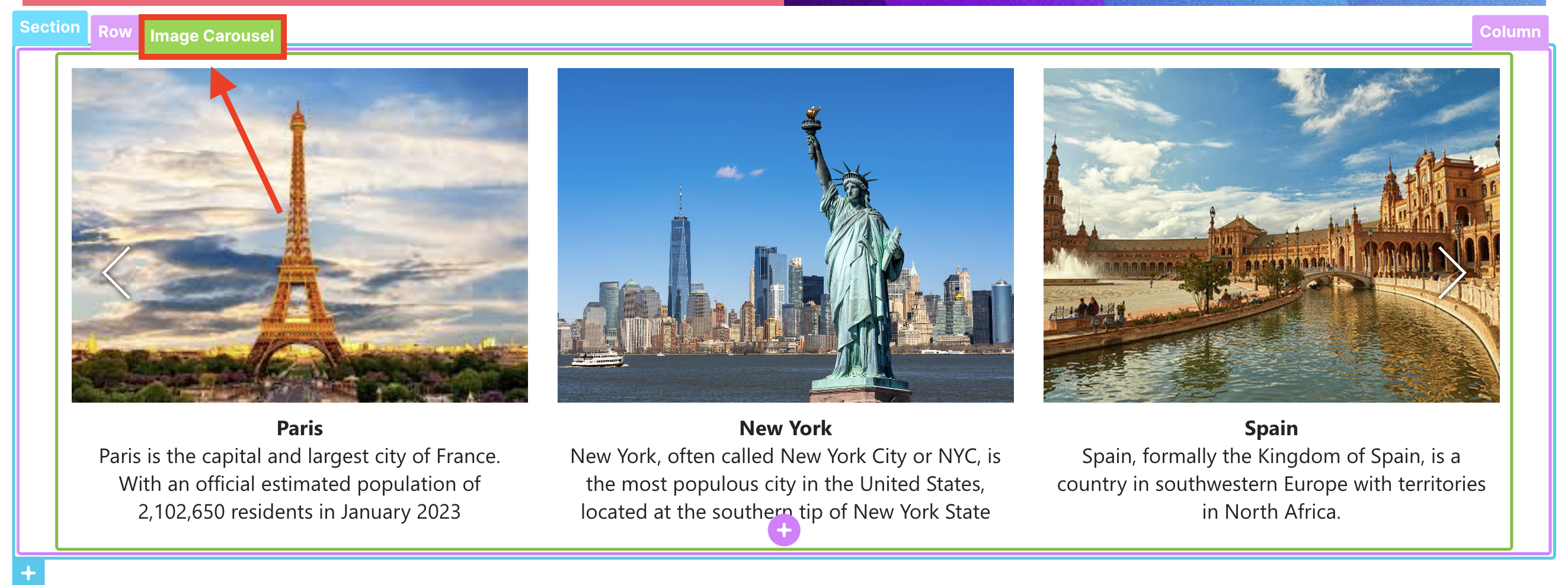 - Click the Image Carousel tag: