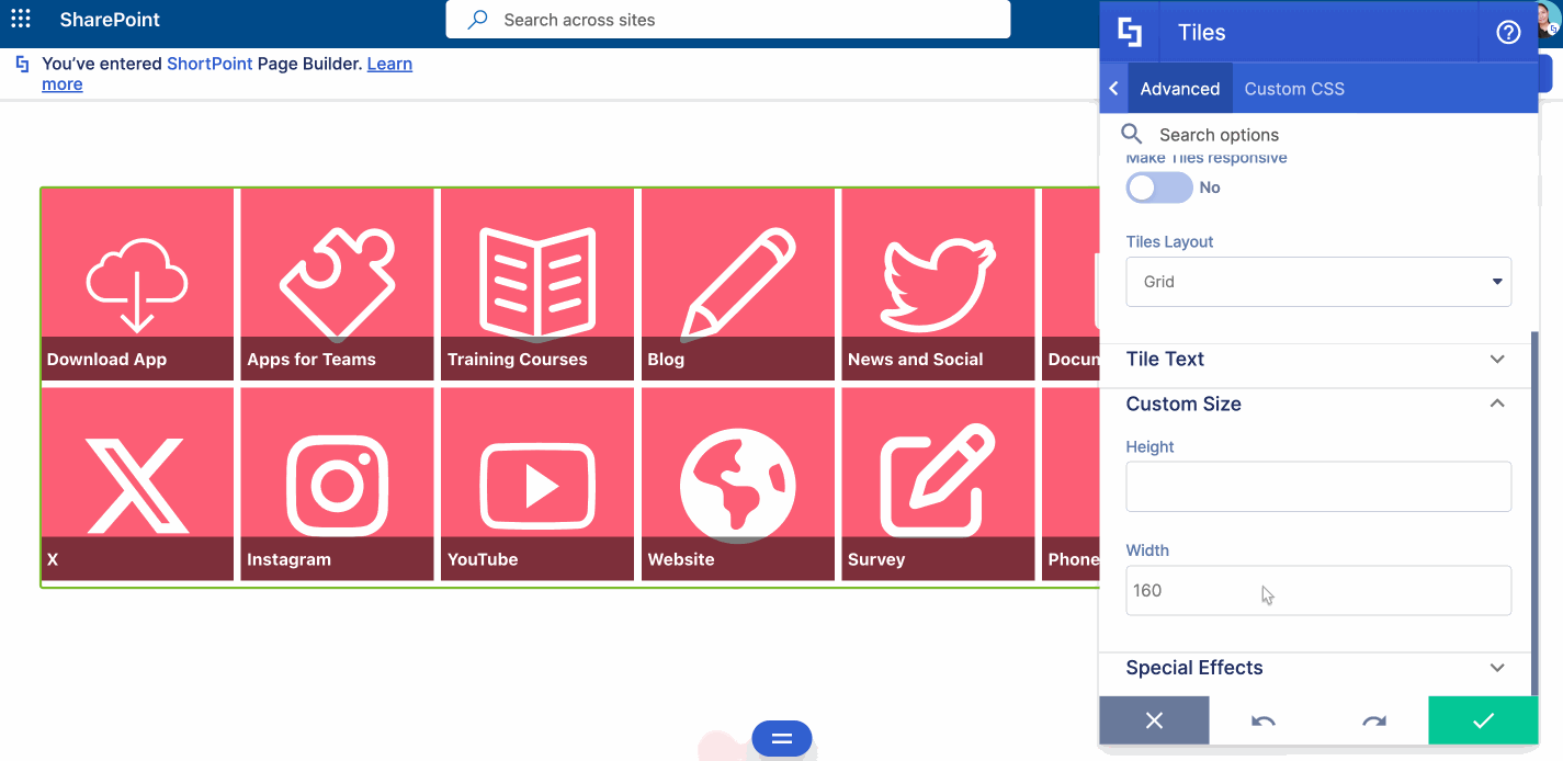 That’s it! You can now resize individual Tiles on a connected Tiles Design Element.
