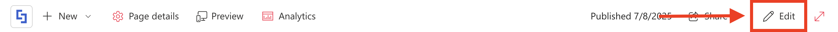 - Go to the SharePoint page where you want to copy Design Elements from and click Edit: