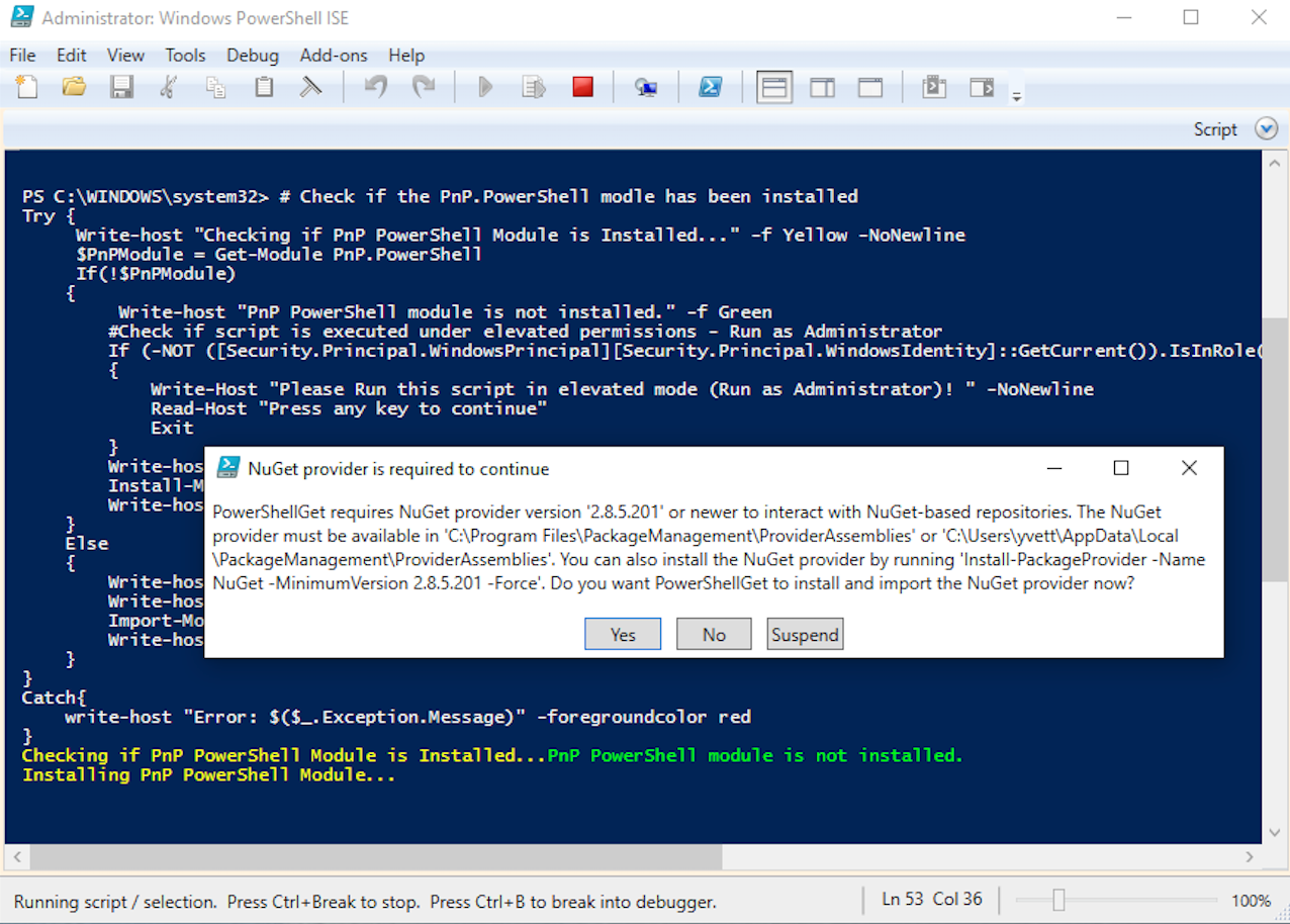 }If you encounter a pop-up window asking to install a NuGet provider, click Yes to install it.