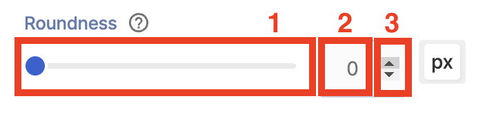 ![]() | Roundness | allows you to round the corners of the Slideshow Design Element. You can modify the roundness value by [1] using the blue slider, [2] typing the value in the white box, or [3] using the up or down arrows. You can learn more about the Roundness in Introducing the Roundness Feature: What It Is and How to Use it. |