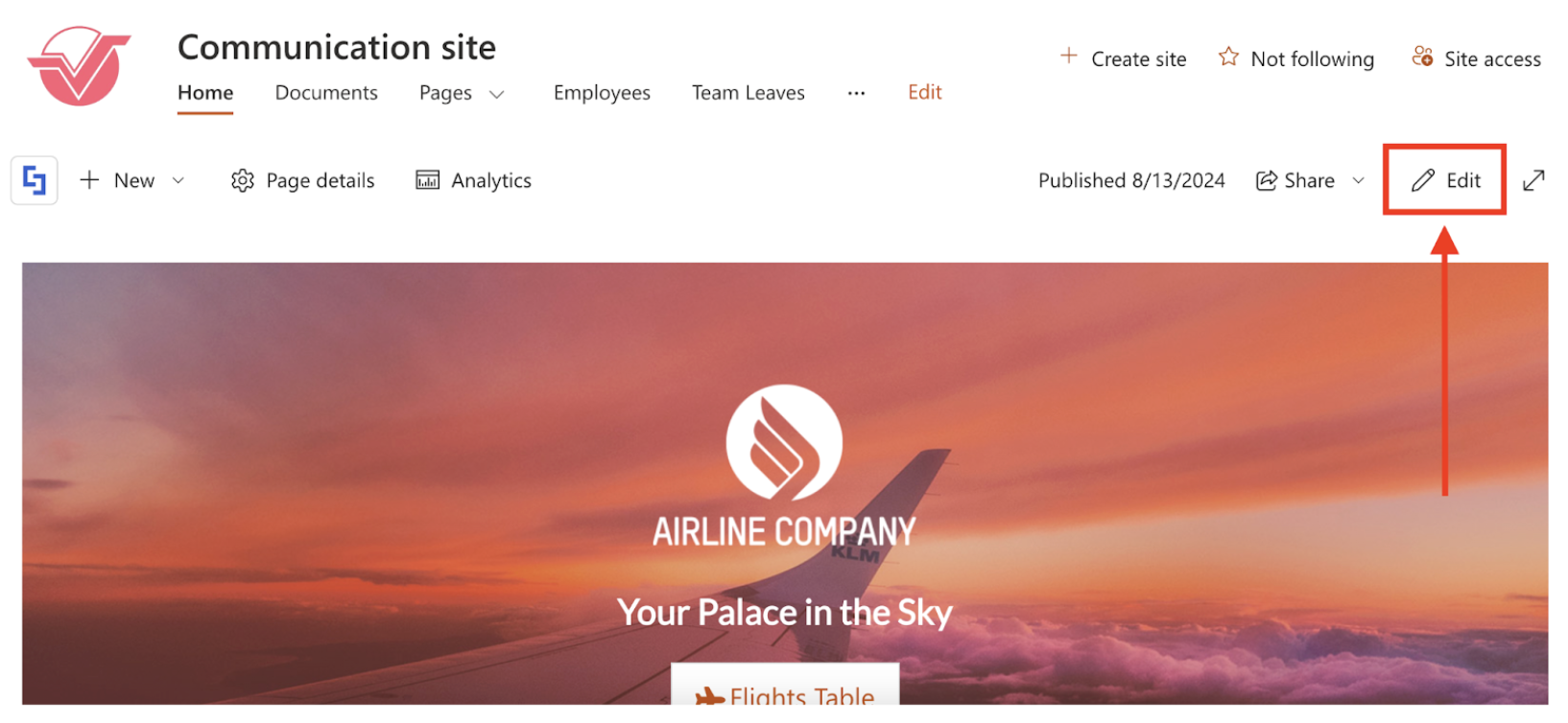 Go to the SharePoint page you want to use and click Edit:
