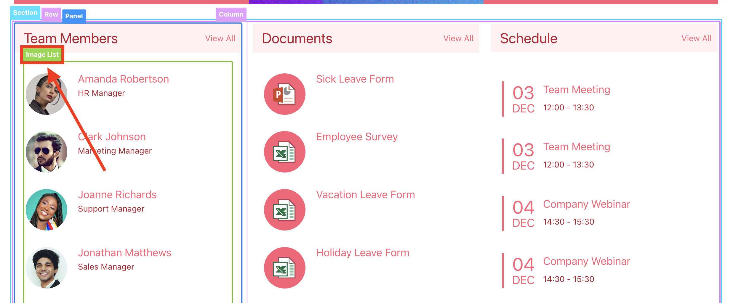 - Click the Easypass tag of the Design Element you want to use. For this guide, we will use the Image List Design Element: