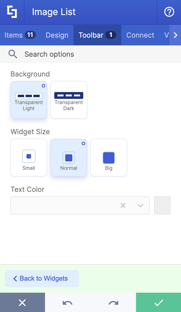 - (Optional) Customize the Widget Size, Theme Color, Spacings, and/or Color Mode of the active widgets.