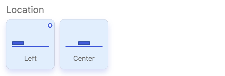 ![]() | Location | allows you to select where the Tabs will be located—left, center, or right. |