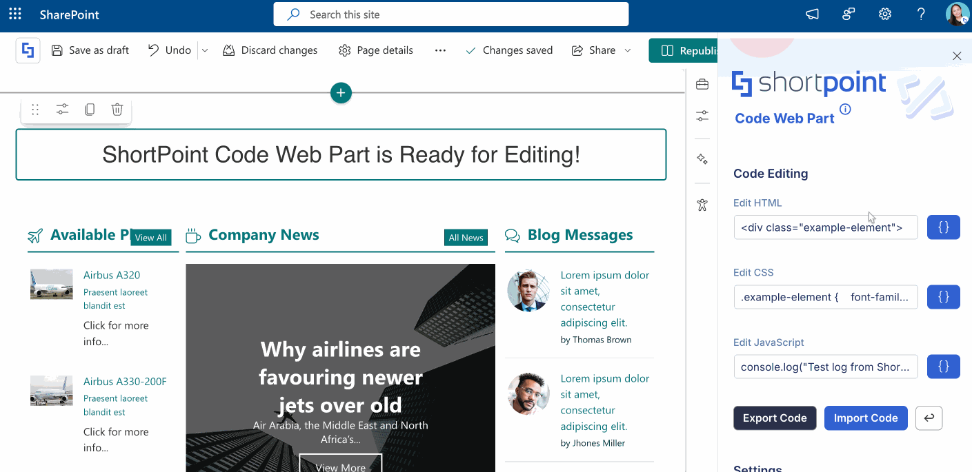 - You must already have the ShortPoint Code Web Part installed on your SharePoint page. To learn how to do this, check out How to Install ShortPoint Code Editor in SharePoint.