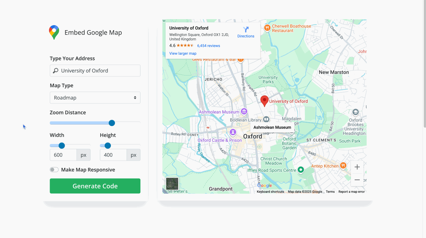 - Look for the Google Maps widget you want to use, customize it, and copy the embed code.