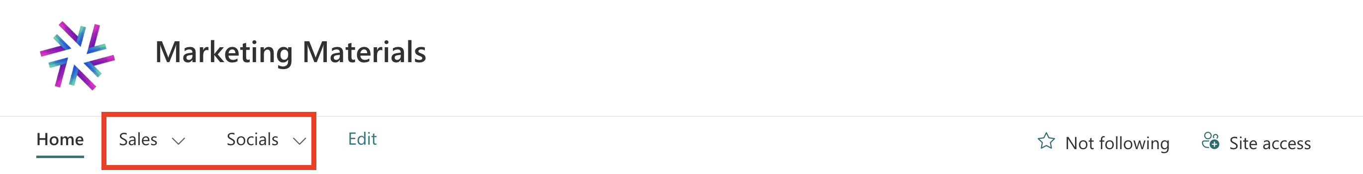 - Labels - are the non-clickable titles in the navigation menu. Unlike links, they do not redirect you to another page when you click on them. They simply serve as the main title of the items in the drop-down. In our example, the labels are Sales and Socials: