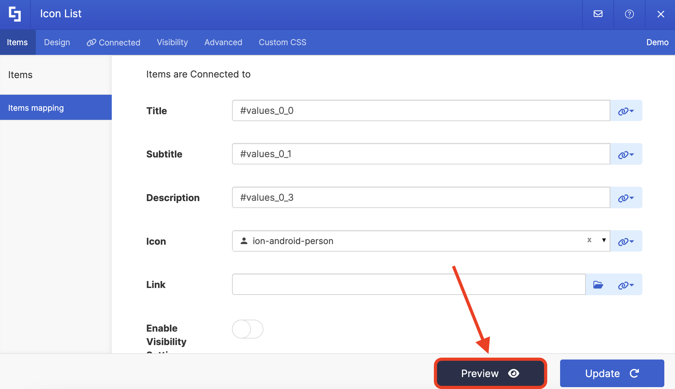 (Optional) If you’re using an Icon List, choose the icon you want to use: