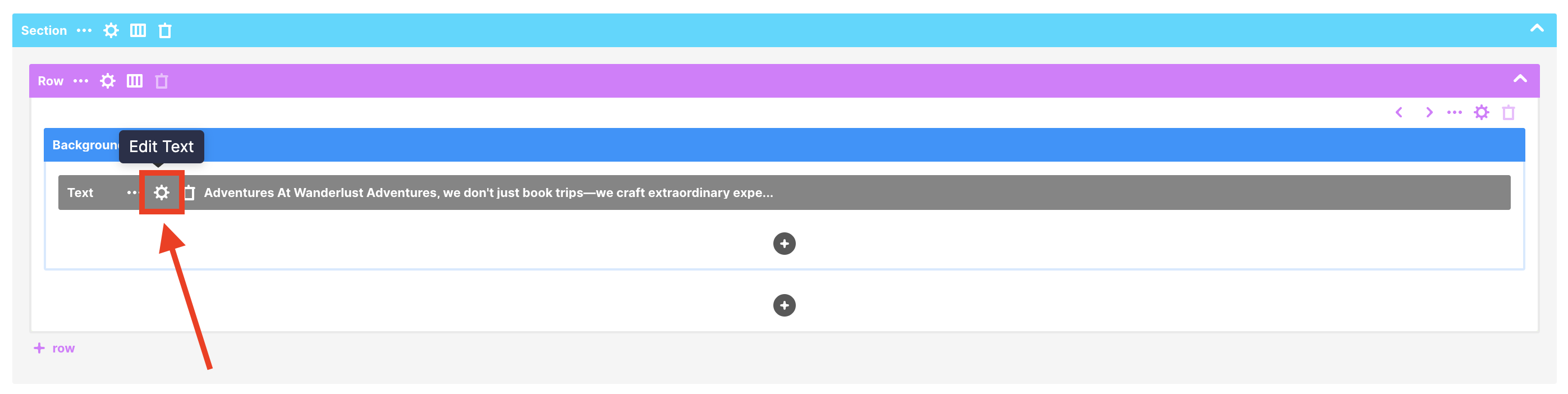 Hover over the Text Design Element you want to use and click the cogwheel icon: