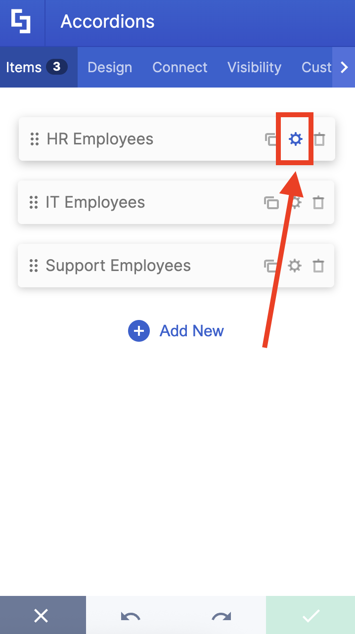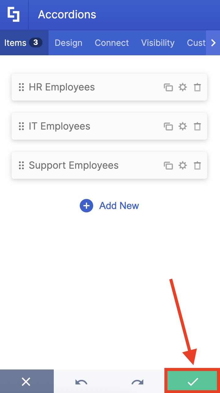 NOTEBefore proceeding, make sure you already have an Accordions Design Element on your page. If you don’t have one yet, check out How to Customize the Accordions Design Element.