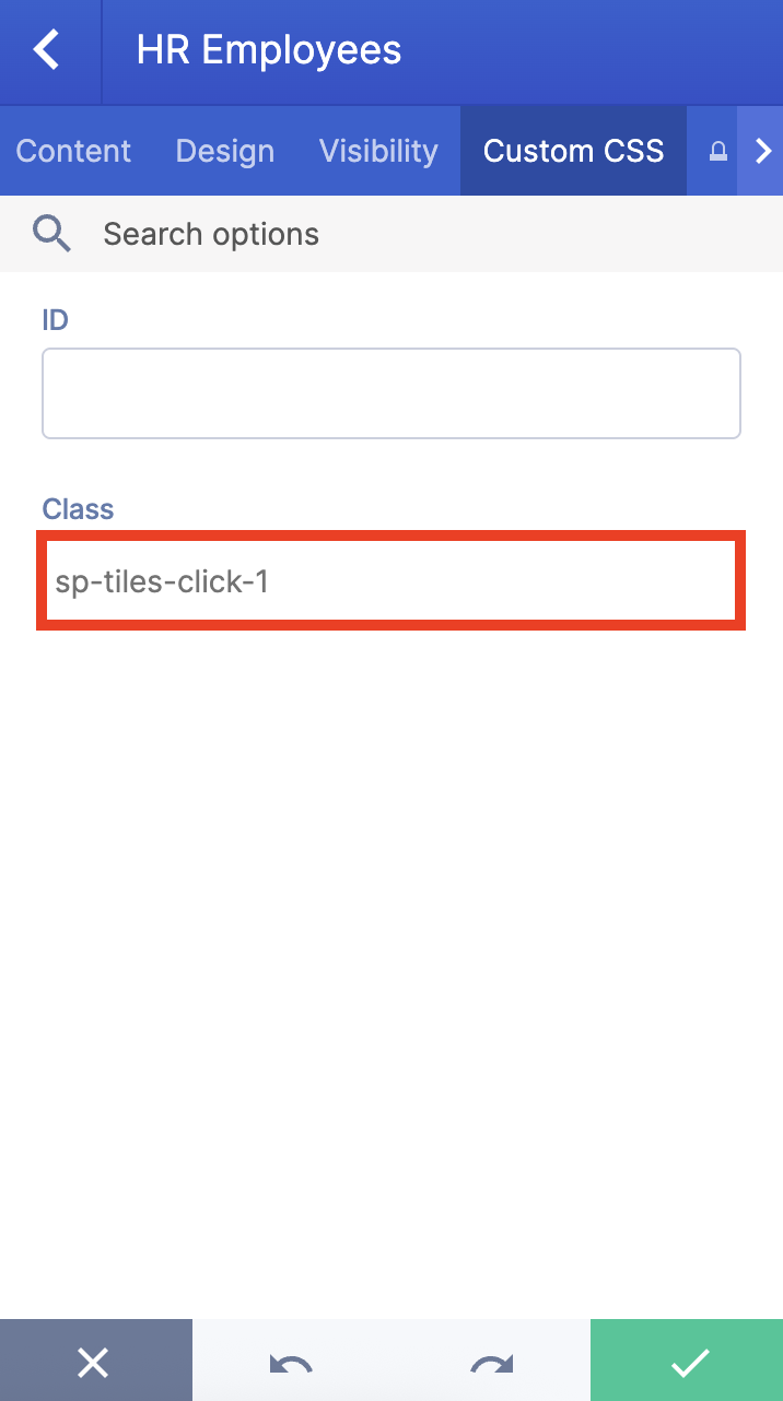 In the Class Name field, write 'sp-tiles-click-number'. Replace ‘number’ with the actual position of your item in the sequence. For example, since this is the first item, use '1'; for the second item, use '2', and so on.