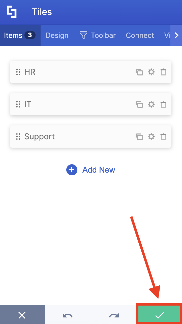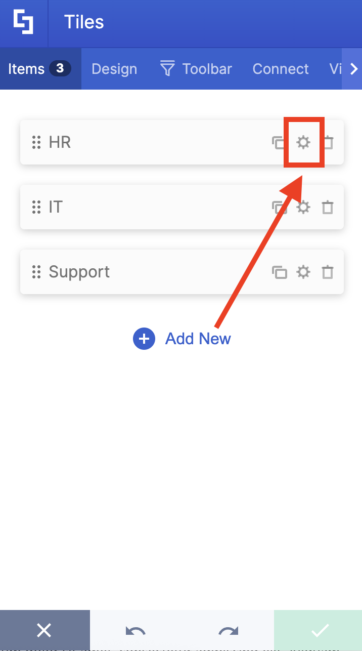 NOTEYou must already have a Design Element that allows linking of multiple items, including Tiles, Simple List, Icon List, etc.
